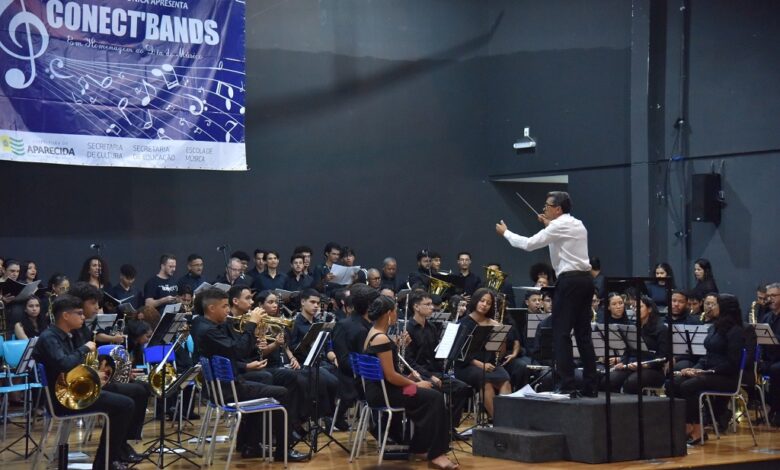 A poucos dias de concluir as atividades de 2025, a Escola de Música de Aparecida realizou nesta terça (8) um concerto especial de fim de ano no Anfiteatro Municipal Cantor Leandro. Com ares de cantata de Natal, a apresentação emocionou os mais de 400 espectadores. As canções foram interpretadas pela Banda Sinfônica de Aparecida, que fez uma apresentação à altura de exibições feitas nas salas mais tradicionais da cena erudita no Brasil.