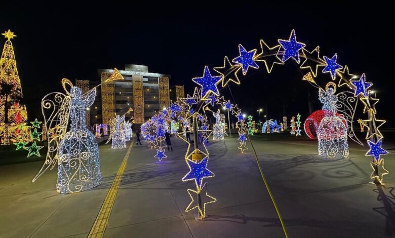 A cidade de Aparecida está iluminada com mais de 1 milhão de pontos de luz distribuídos em praças, avenidas e prédios públicos, criando ambientes temáticos que reforçam o espírito natalino, o pertencimento e a valorização das famílias aparecidenses. O Natal Aparecida, ação promovida pela Prefeitura de Aparecida de Goiânia, promete encantar moradores e visitantes. A decoração permanece acesa todas as noites até o dia 4 de janeiro e, a partir desta quarta-feira, 3 de dezembro, às 18h, os visitantes poderão apreciar os enfeites natalinos e saborear os lanches da Praça de Alimentação montada em frente ao prédio da Cidade Administrativa Maguito Vilela.