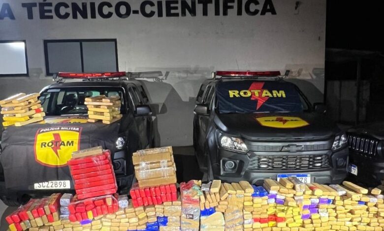 A operação foi realizada no Jardim Palácios, após compartilhamento de informações entre equipes da Rotam 20 e do Comando de Policiamento da Capital (CPC/2). Durante a ação, os policiais localizaram 545,4 quilos de maconha, além de duas balanças de precisão e dois veículos utilizados no transporte do entorpecente.